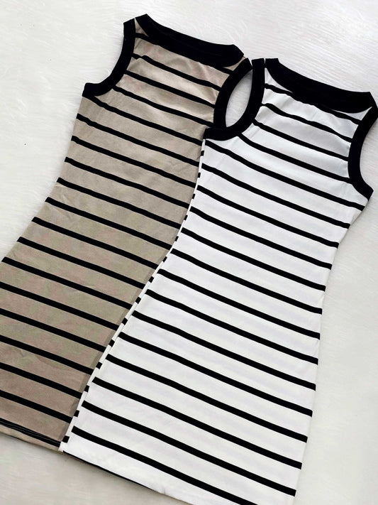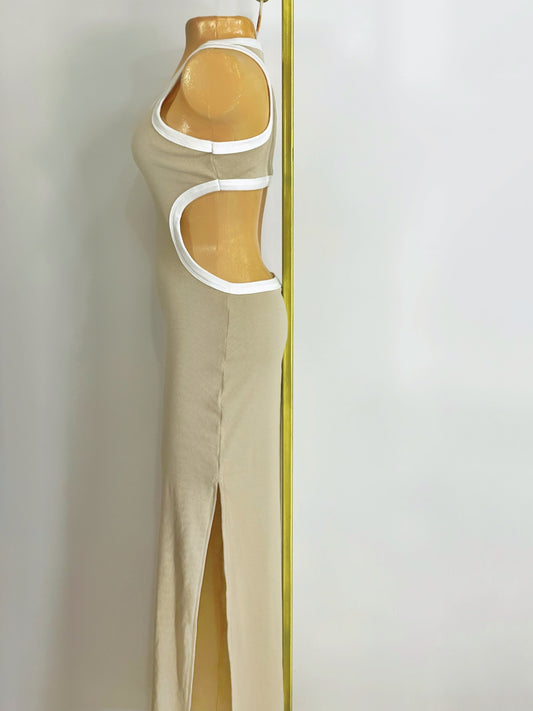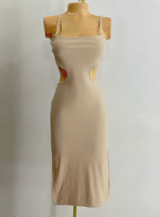 Vestido con abertura en el abdomen beige