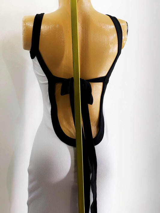 Vestido bicolor abertura trasera blanco-negro