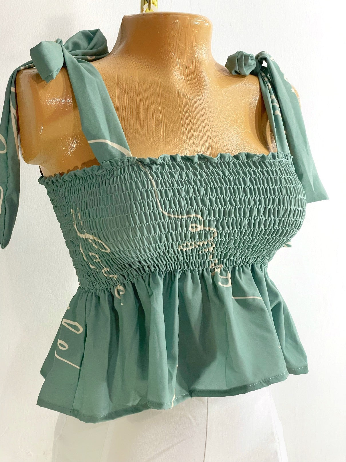 Blusa de boleros fondo verde agua marina
