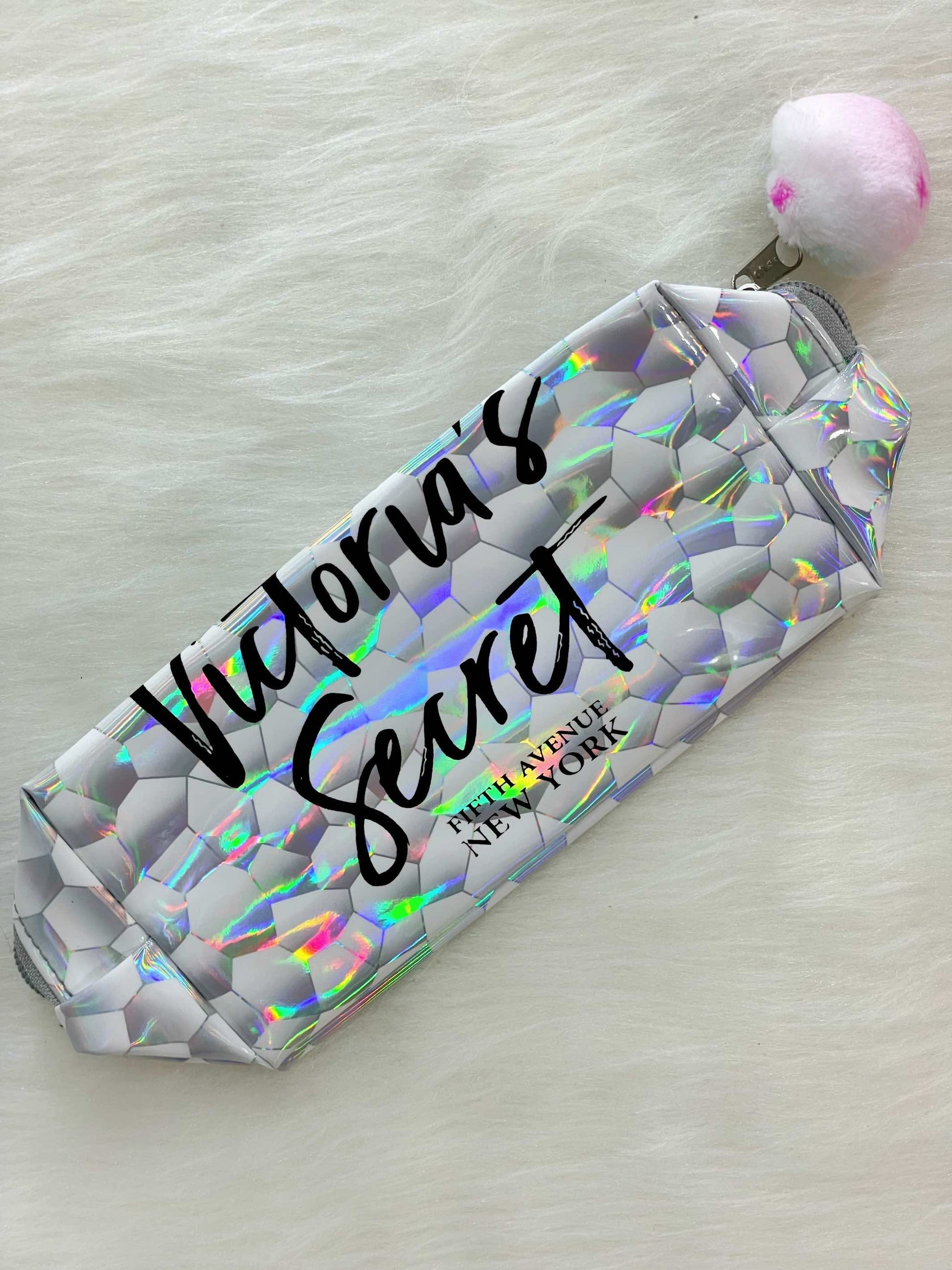 Cosmetiquera plateada con rayas