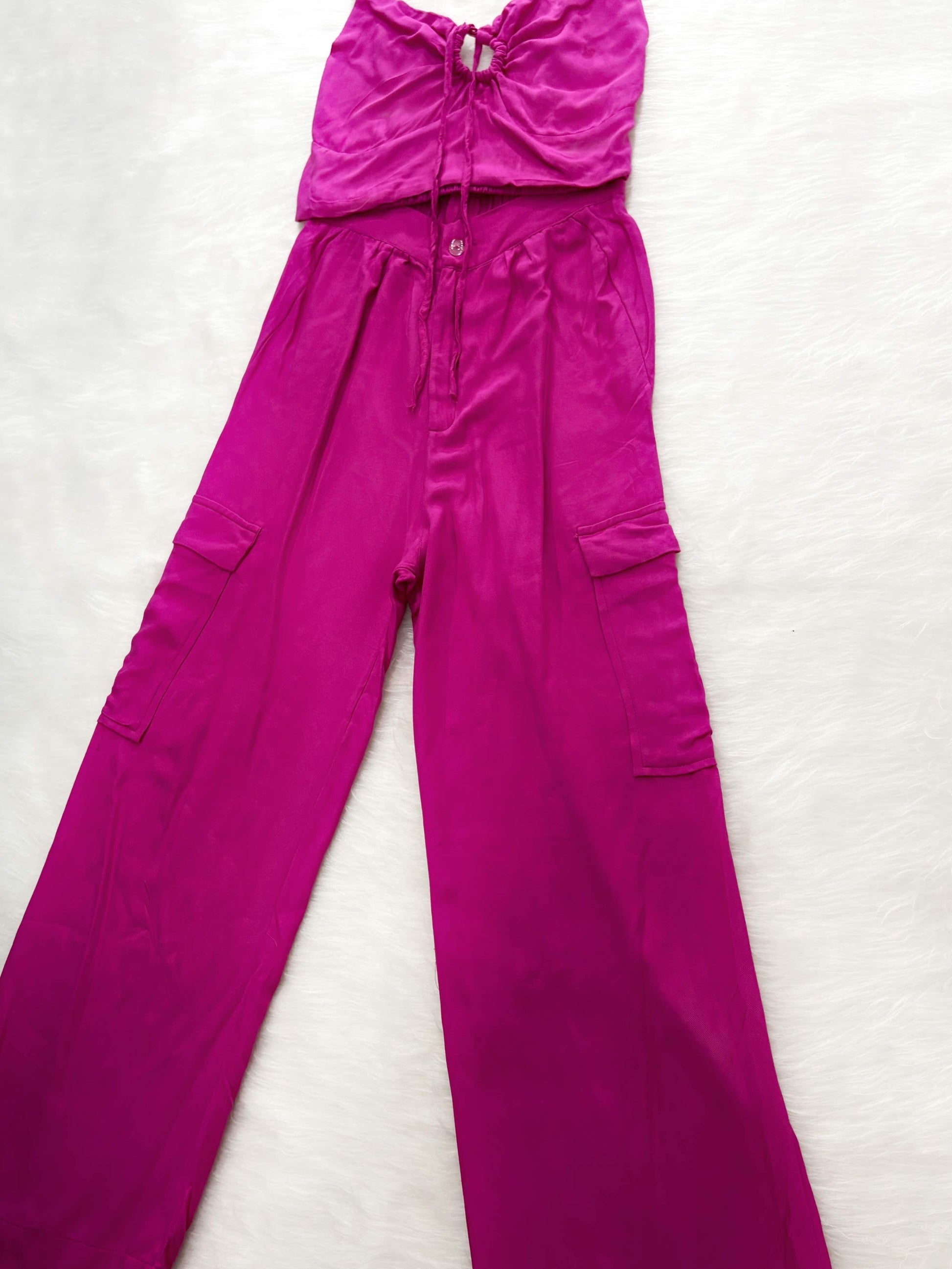 Set crop top + pantalon fucsia