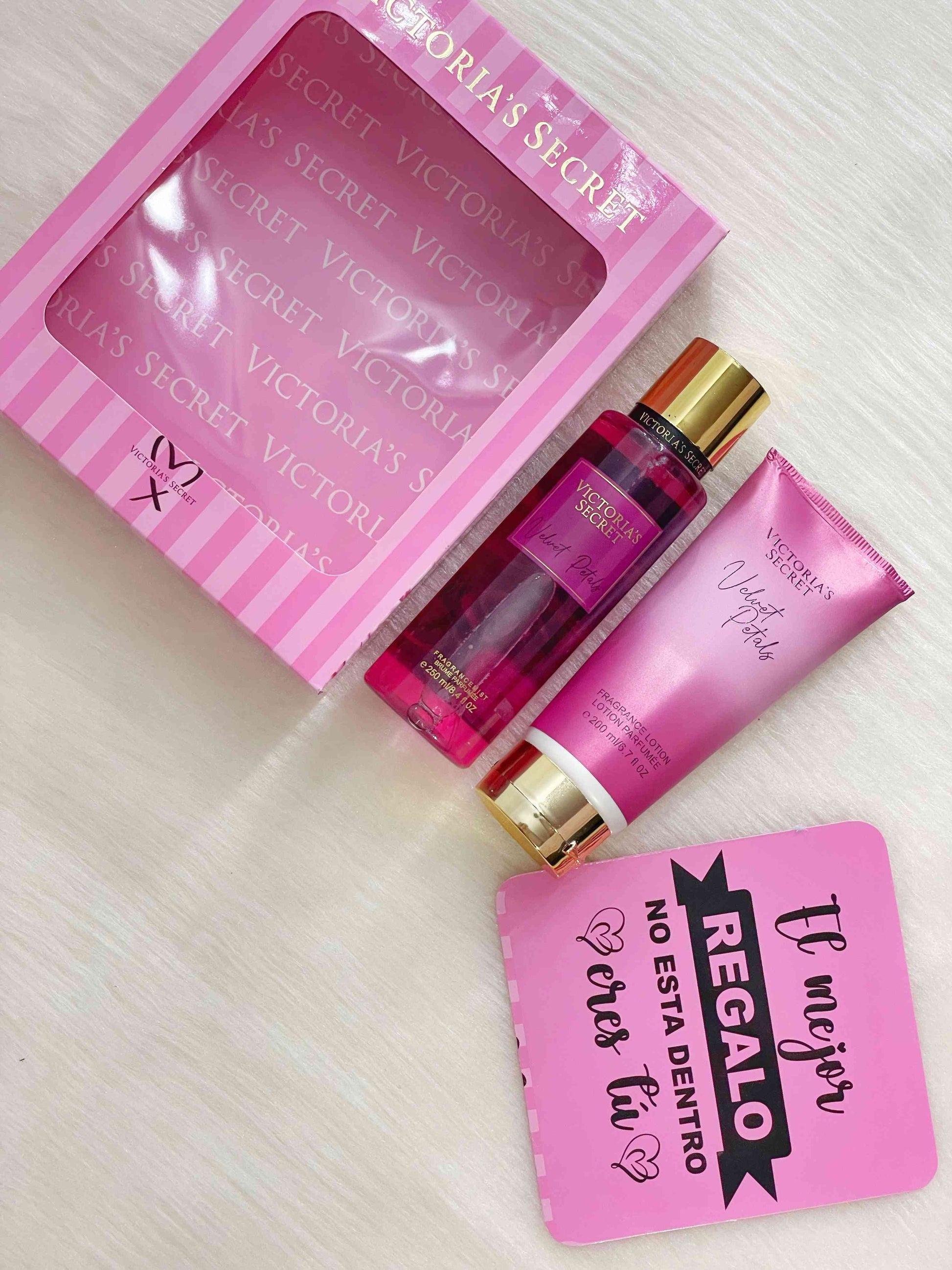 Incluye: Splash victoria's secret's tapa dorada, crema victoria's secret's humectante, caja y tarjeta