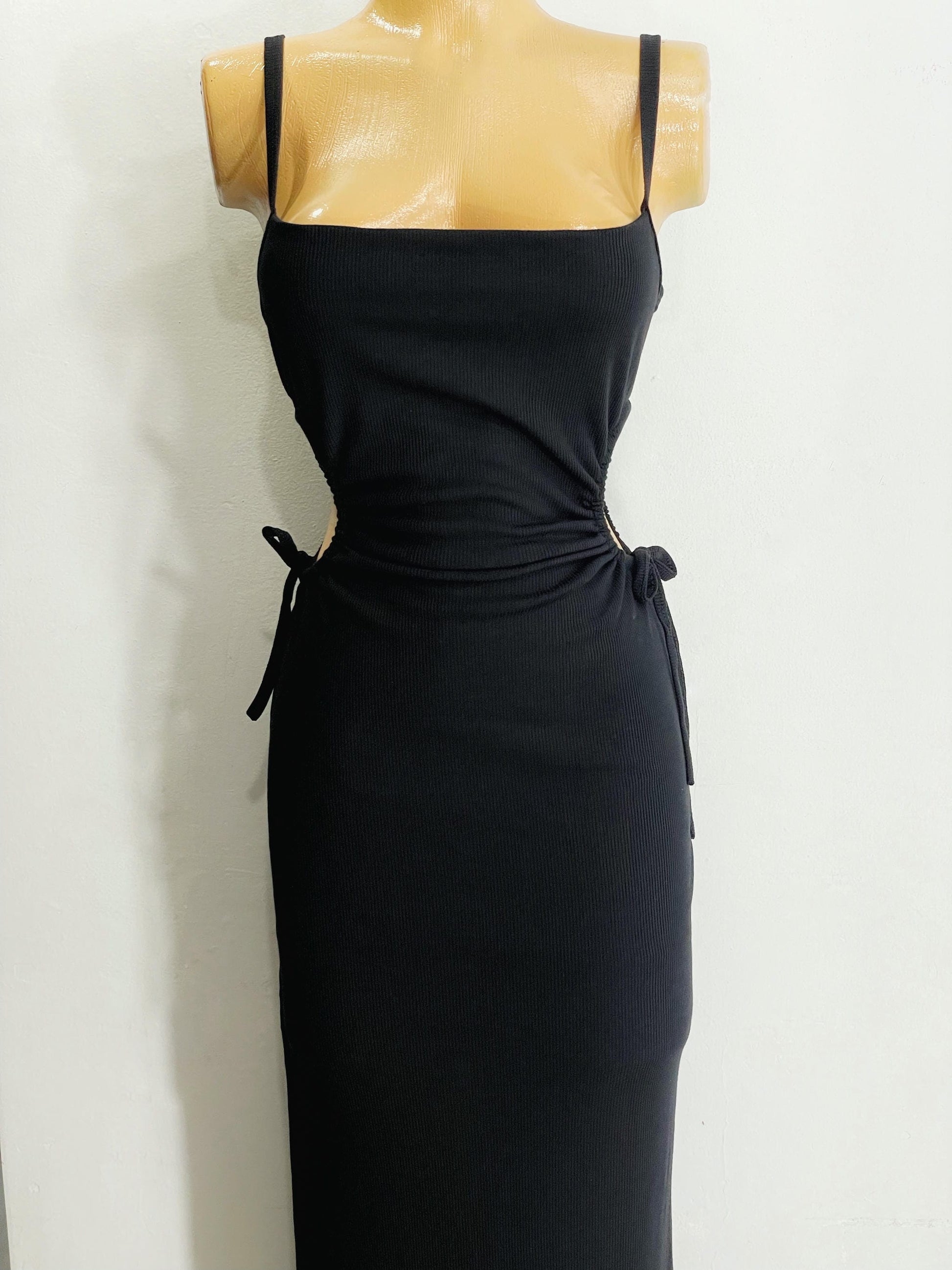 Vestido aberturas laterales beige negro
