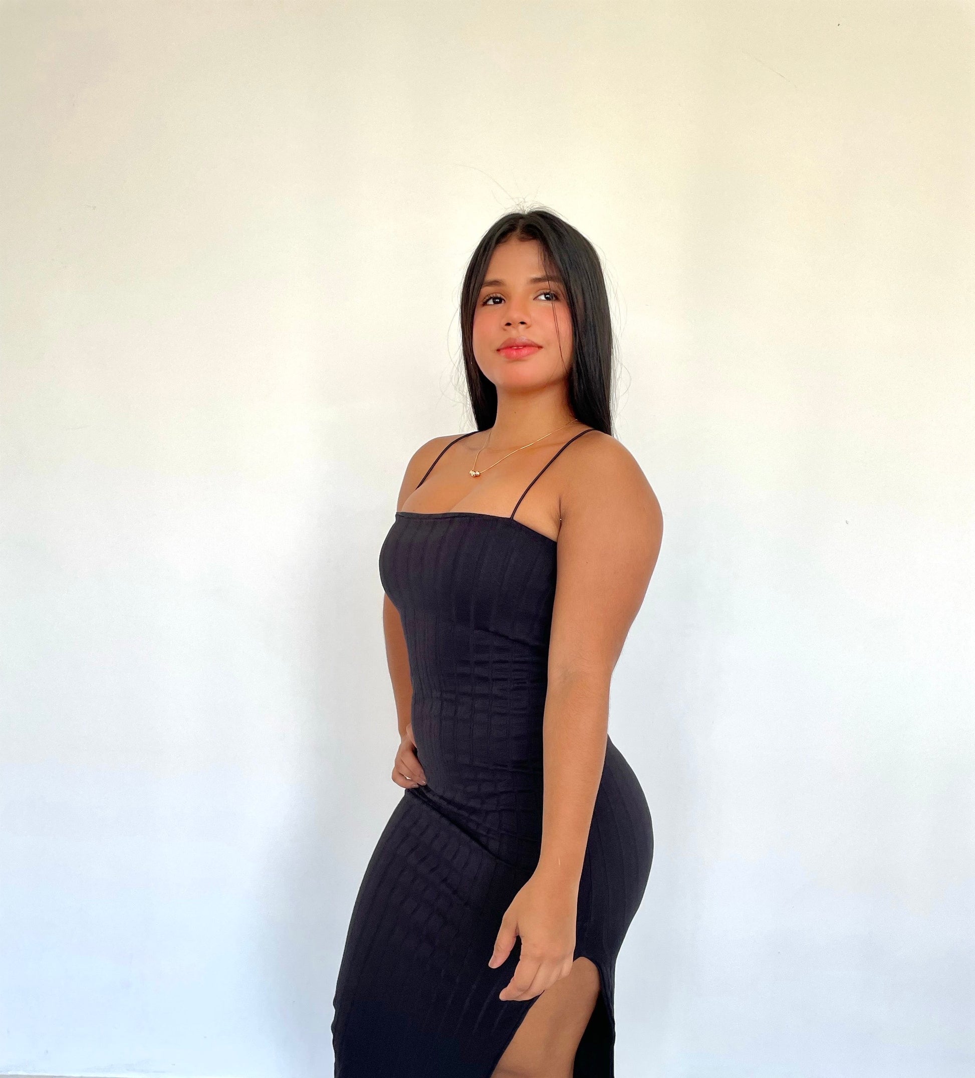 Vestido tiras cola de ratón negro